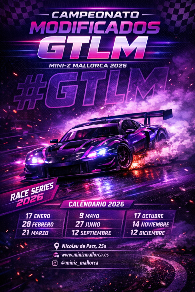 En Mini-Z Mallorca, la emoción de las carreras en escala 1:28 se vive al máximo. Nuestro club reúne a apasionados del radiocontrol en un ambiente divertido, competitivo y accesible para todos los niveles. Organizamos competiciones regulares en dos categorías principales, diseñadas para ofrecer tanto igualdad como emoción en pista: